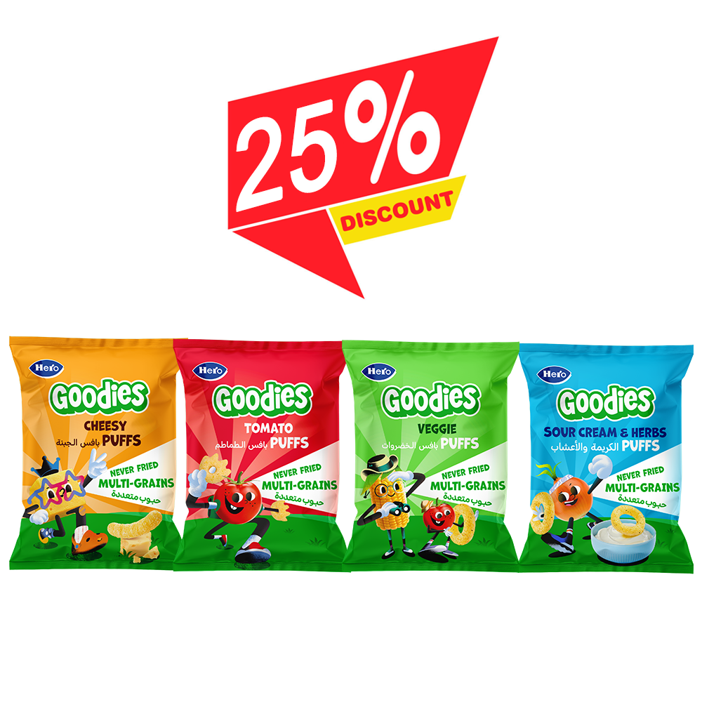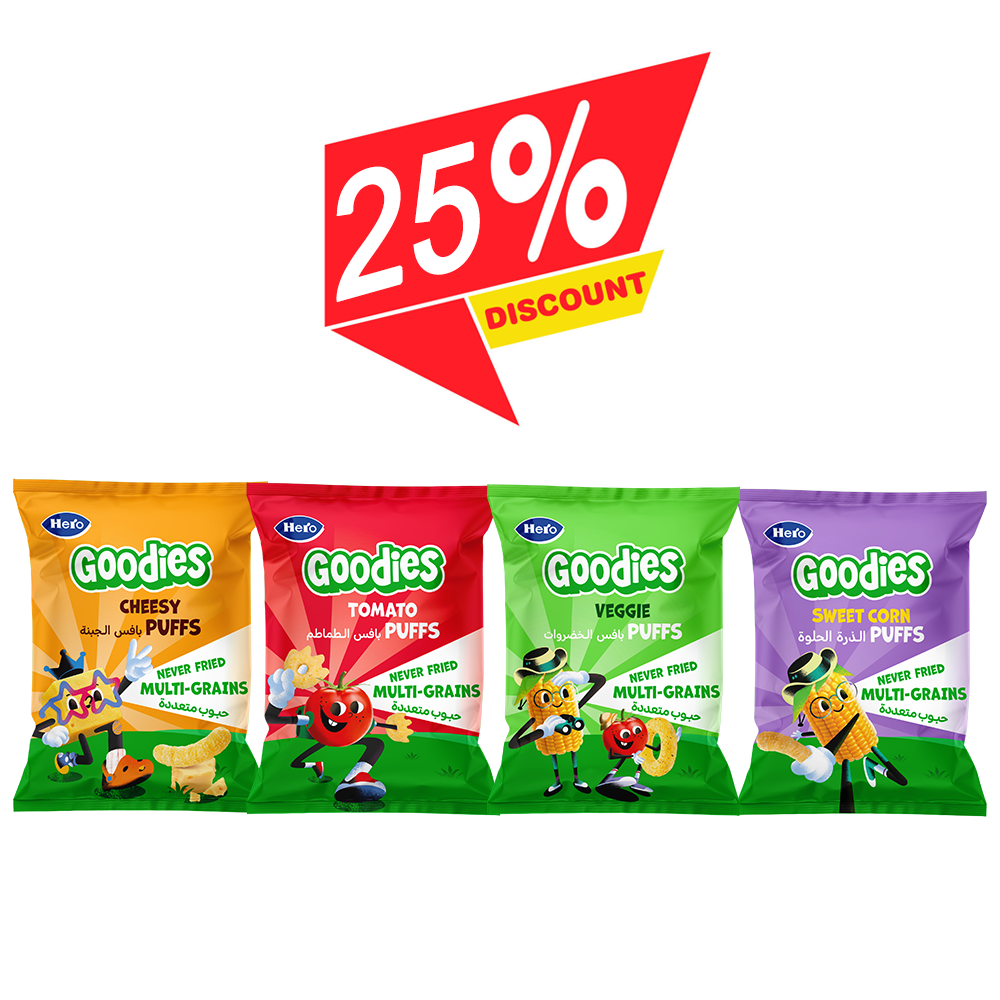 Hero Goodies Cheesy Puffs 30g + Hero Goodies Tomato Puffs 30g + Hero Goodies Veggie Puffs 30g -25% Discount