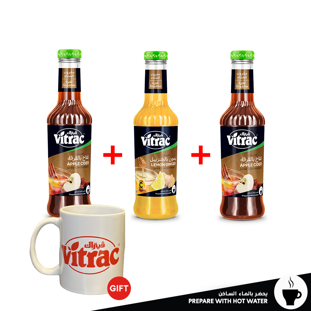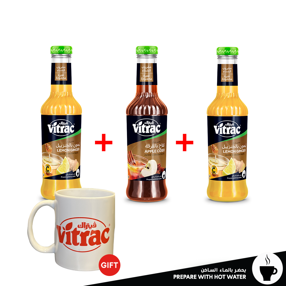 2 فيتراك شربات تفاح بالقرفه + شربات ليمون بالجنزبيل + فيتامين سي635 مل + مج هدية