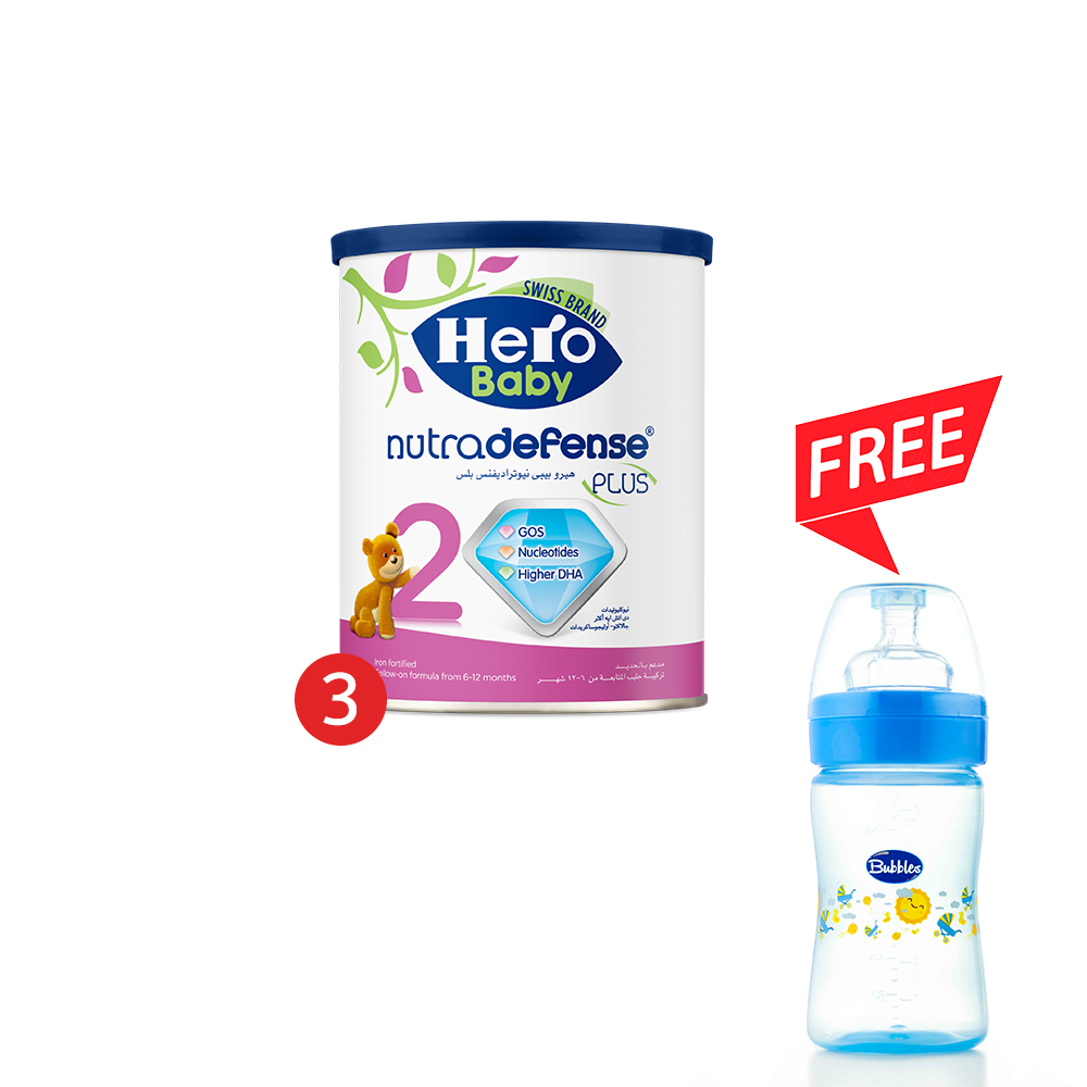 3 Hero Baby 2 Nutradefense Plus + FREE Bubbles feeding bottle180ml