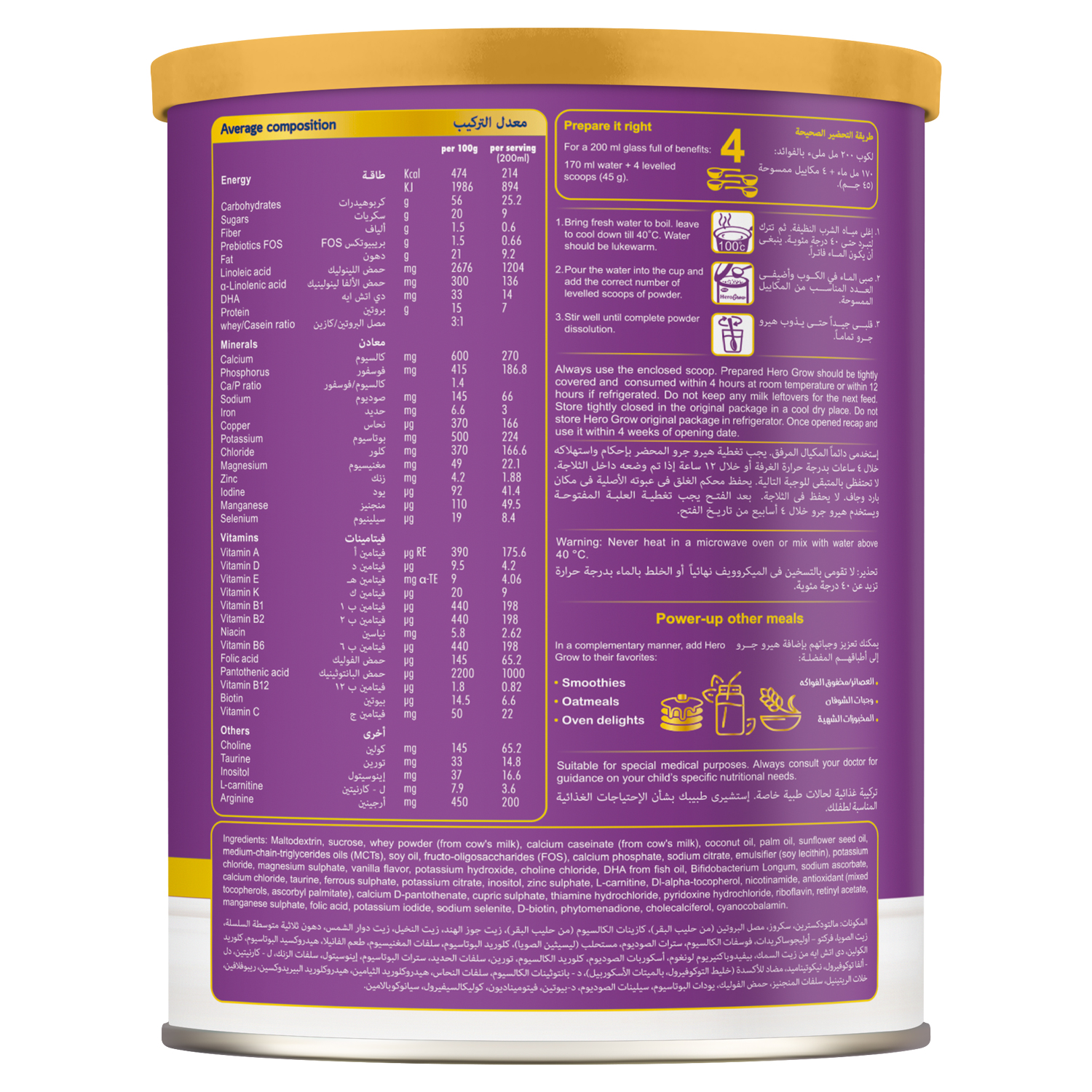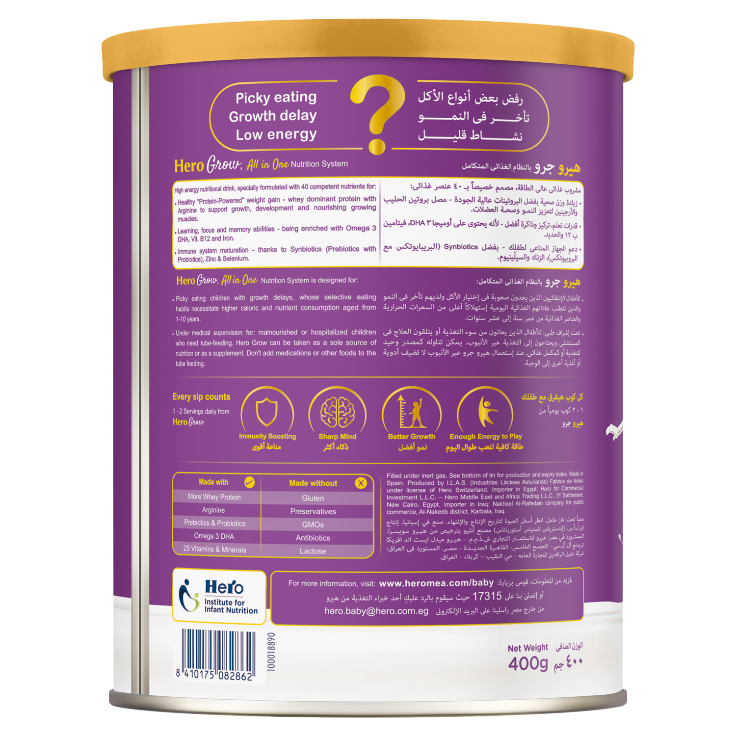 • Hero Grow is developed by nutrition experts at the Swiss Hero Group with more than 80 years of experience in nutrition; with innovative combination of 40 competent nutrients in vanilla taste to support: