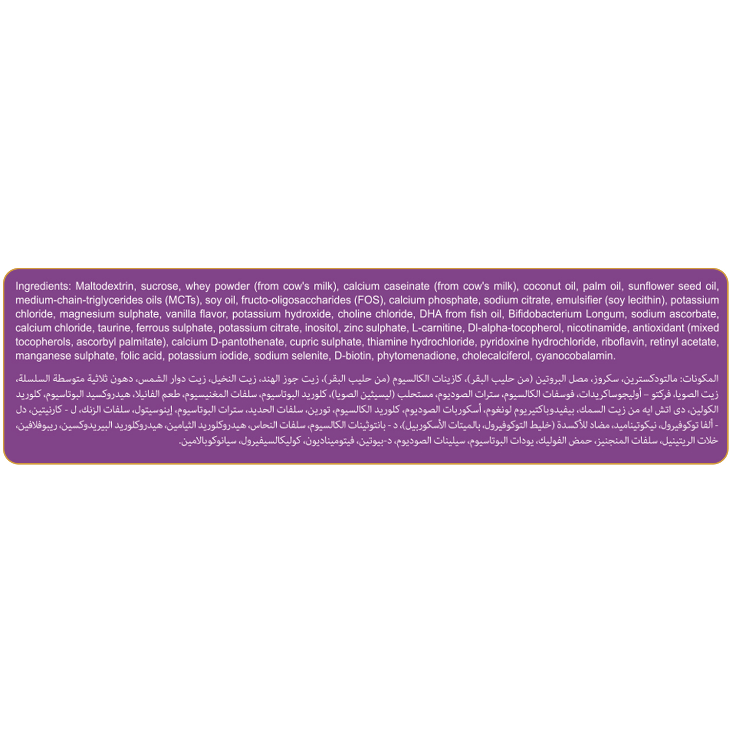 • Healthy growth: high quality protein blend for adequate weight and height gain in addition to being whey dominant (75%) which allows easy sticking to the meal plan.